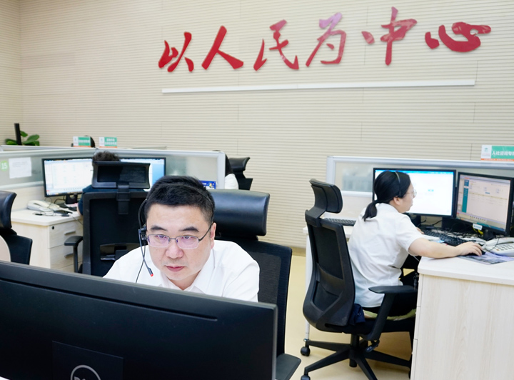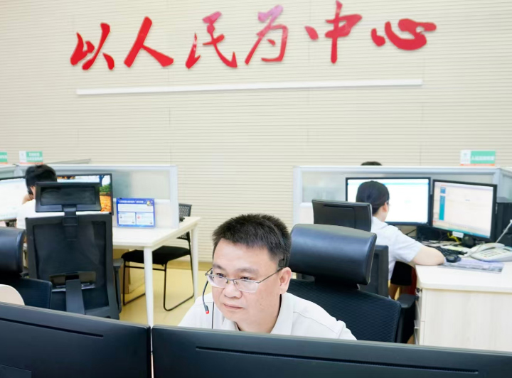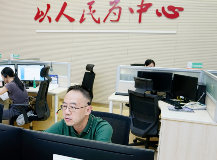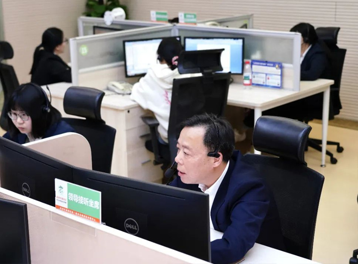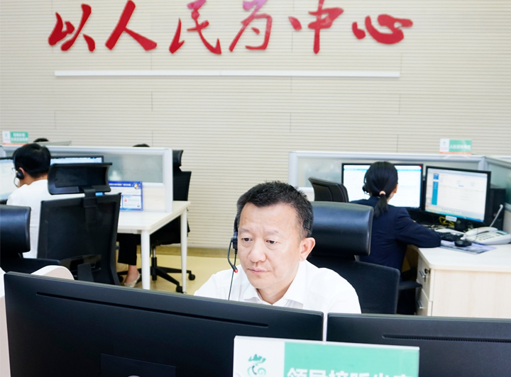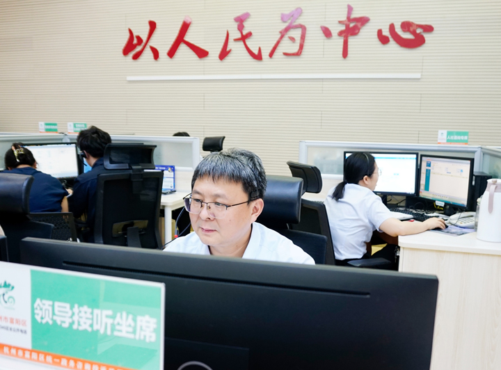 2025年6月10日区委常委、副区长何献忠到中心接听群众来电