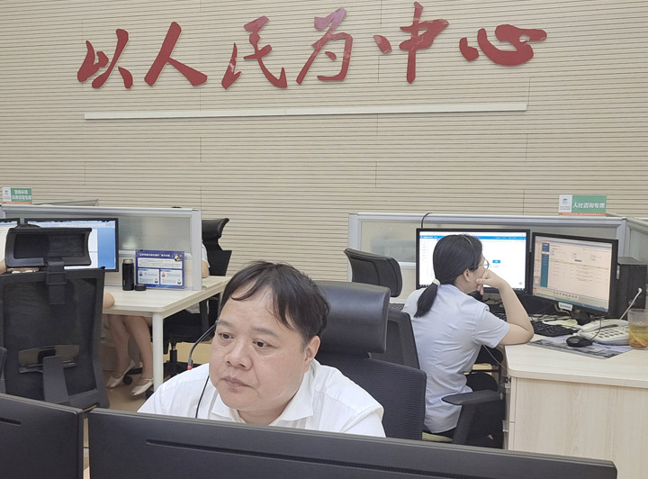 2025年7月23日区委常委、常务副区长喻乃群到中心接听群众来电