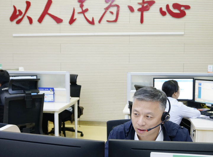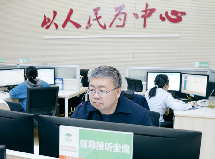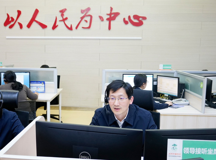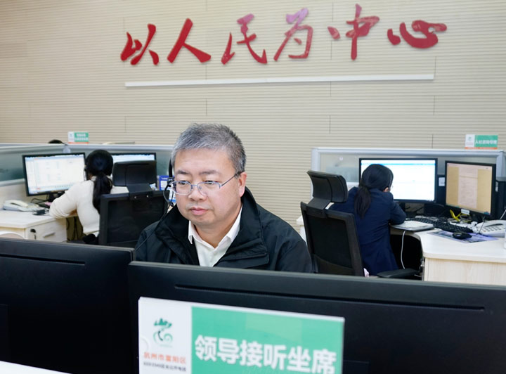 2024年11月20日区委常委、副区长何献忠来受理中心接听群众来电
