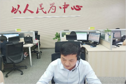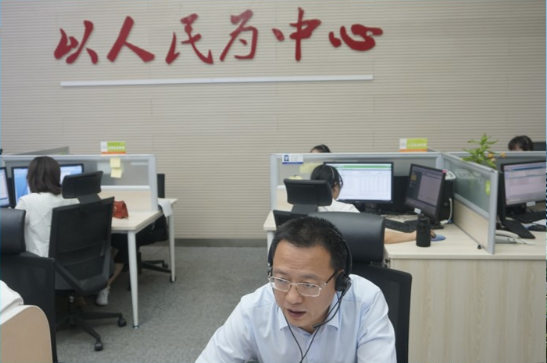 2019年11月区领导丁永刚到中心接听群众来电